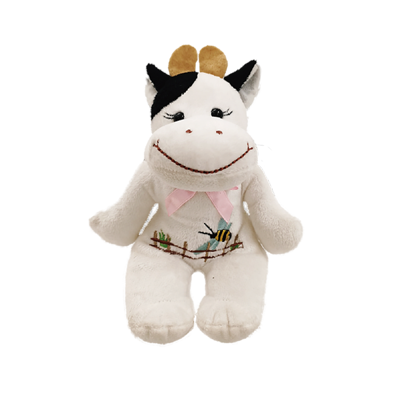 Seekor anak sapi yang duduk seukuran telapak tangan yang termasuk dalam seri 'Farm Range' yang lebih luas. DNA visualnya berwarna pastel lembut + ramah buku cerita: tambalan Holstein, sulaman ambing merah muda, dan ikon lebah kecil yang dijahit di telinga. Segera menandakan 'dekorasi kamar bayi' dan 'perangkat pertanian koleksi' dan bukan satu item impulsif.